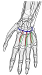 | 指(左側面) | 右手掌側の 神経/動脈 |