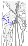 ■ 大腿静脈( 浅腹壁静脈、 浅腸骨回旋静脈、 外陰部静脈、 大腿深静脈、 内側 / 外側大腿回旋静脈 )