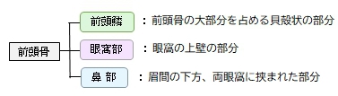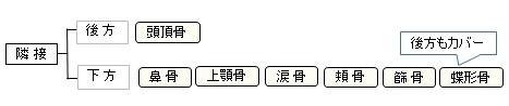 前頭骨は、以下の7種(12個)の他の頭蓋骨と隣接している。