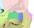 【 面/縁 】 涙骨には、内外の2つの面がある。外側面は眼窩の内側壁の一部を構成する面で眼窩面とも呼ばれ、後涙嚢稜によって前後の2つに分けられている。一方、内側面は、鼻腔の外側壁の一部を構成しているので鼻腔面とも呼ばれている。