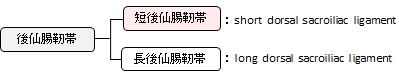 後仙腸靭帯は以下のように、短後仙腸靭帯と長後仙腸靭帯の2つに分けて考えることができる。