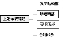・3つの咽頭収縮筋は、嚥下の際に上から順に収縮して、食物を下方に移動させる。 |