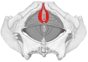 The bulbospongiosus muscle (bulbocavernosus in older texts) is one of the superficial muscles of the perineum.[1] It has a slightly different origin, insertion and function in males and females. In males, it covers the bulb of the penis. In females, it covers the vestibular bulb.