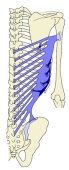 A fibrous slip usually passes from the upper border of the tendon of the Latissimus dorsi, near its insertion, to the long head of the triceps brachii. This is occasionally muscular, and is the representative of the dorsoepitrochlearis brachii of apes.[2][3] This muscular form is found in ~5% of humans and is sometimes termed the latissimocondyloideus.[2]