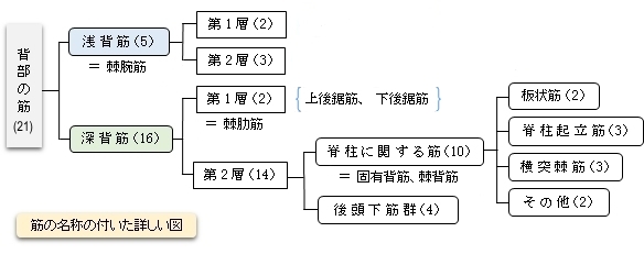 ・ 「 肩甲骨の高さにあって、内側上方から外側下方へ斜めに走る薄い筋 」 ( 日本人体解剖学 )