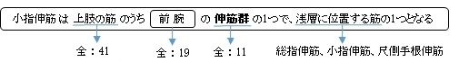 ・ 弱い筋なので、働きとしては総指伸筋の補助的なものになる。
