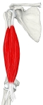 ・「両頭が合して共通の筋腹を構成するのは三角筋の停止部付近となる」 (Wikipedia)