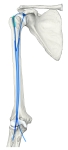 The tendon that attaches to the radial tuberosity is partially or completely surrounded by a bursa, the bicipitoradial bursa, which ensures frictionless motion between the biceps tendon and the proximal radius during pronation and supination of the forearm.[6]