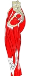 筋連結 : 外側広筋、内側広筋、中間広筋、長内転筋、薄筋、短内転筋、小内転筋、大腿方形筋、大腿二頭筋(短頭)、半腱様筋、半膜様筋、腓腹筋