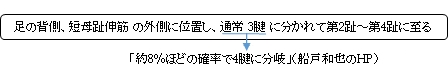 ・「隣接する短母趾伸筋と併せて1つの筋」とみる解剖学者もいるようである。