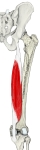The semimembranosus muscle, so called from its membranous tendon of origin, is situated at the back and medial side of the thigh. It is wider, flatter, and deeper than the semitendinosus (with which it shares very close insertion and attachment points).The muscle overlaps the upper part of the popliteal vessels.