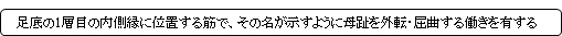 【 起 始 】: 踵骨隆起(踵骨)の内側部、屈筋支帯、足底腱膜、舟状骨の粗面