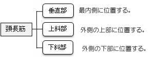 ・ 頭長筋の内側にあり、以下の3部より構成されている。