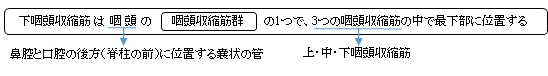 ・下咽頭収縮筋は3つある咽頭収縮筋の一番下部に位置するものとなる。