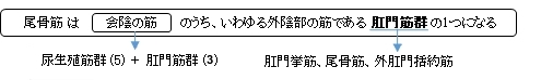 「 肛門挙筋群の一部とみなすべきもので、その後方を補足する。坐骨棘から起こり、仙骨尖および尾骨につく。」