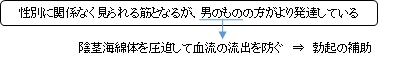 「 男 ) 陰茎海綿体を圧迫し、勃起を助ける。 」 ( 日本人体解剖学 )