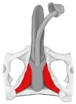 ・ 女 : 男のものに比べて小さく、坐骨下枝・陰茎海綿体外側面から起こり、陰核背面の隔膜に達する。 」