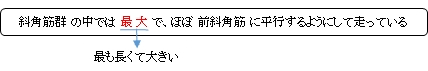 ・ 停止付近で 前斜角筋 と 中斜角筋 に三角形のすき間ができるが、これを 斜角筋隙と言い、その間を 鎖骨下動脈 と 腕神経叢 が通っている。