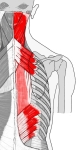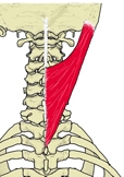 It arises from the lower half of the nuchal ligament, from the spinous process of the seventh cervical vertebra, and from the spinous processes of the upper three or four thoracic vertebrae.
