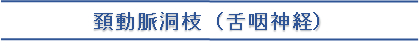舌咽神経の頚動脈洞枝とは ・「 洞神経とも呼ばれている 」( 船戸和弥のホームページ) 「日本人体解剖学 (下巻) 「頚動脈洞にいき、いわゆる頚動脈洞反射の求心性神経となる。心臓の運動を抑制し血管拡張を起こさせるもので、迷走神経の枝である抑制(減圧)神経とともに、反射的に血液調節を行う、極めて重要な機能をもつ神経である。」 以下は舌咽神経の枝を簡単に表した図となる。