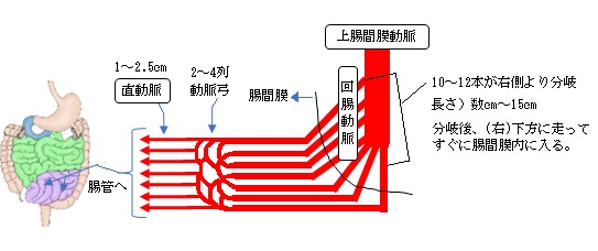 - 実際には「空腸に行く血管」と「回腸に行く血管」として機能的に区別されることが多いです。 」