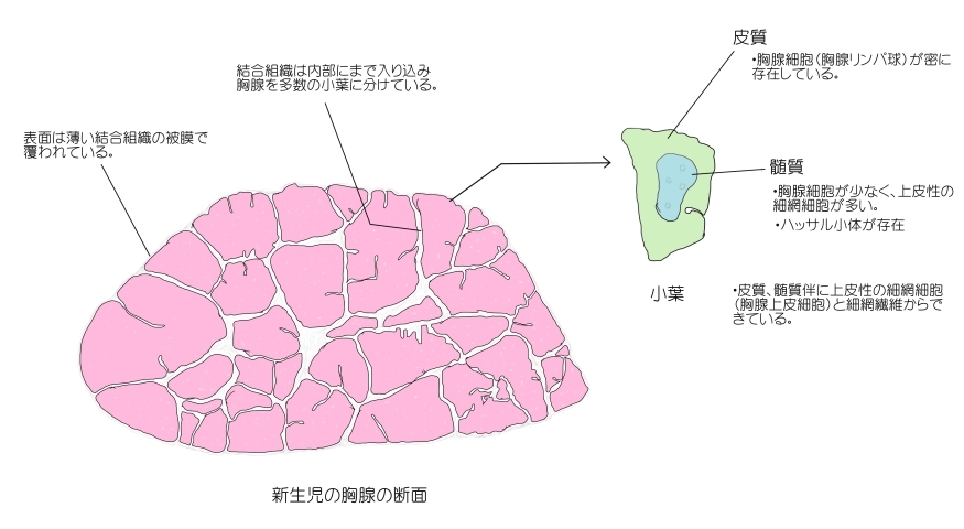 胸腺は、骨髄で造血幹細胞から分化したリンパ芽球をTリンパ球にして全身のリンパ性組織に送っている。