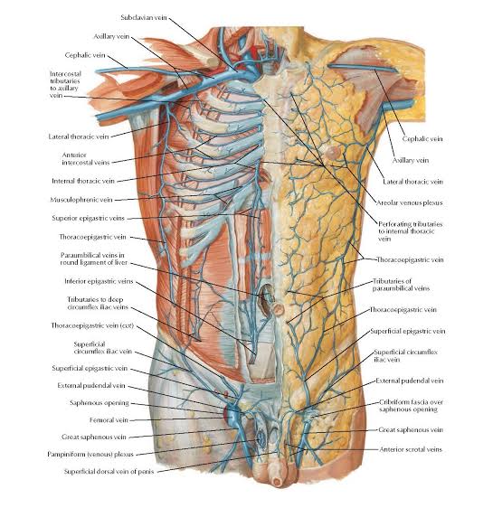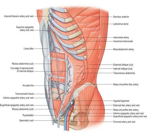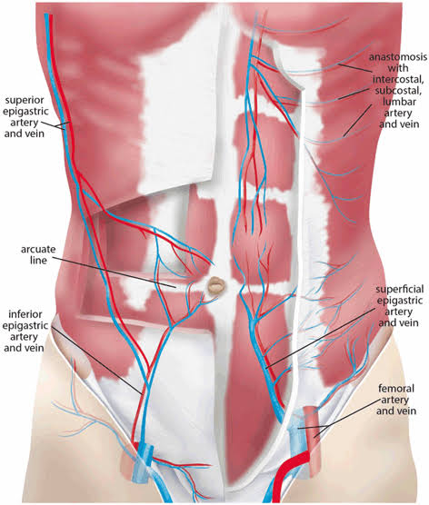 ・ external iliac vein : 外腸骨静脈 ・ anastomose : 吻合する ・ superior epigastric vein :上腹壁静脈 ・ inferior epigastric artery : 下腹壁動脈