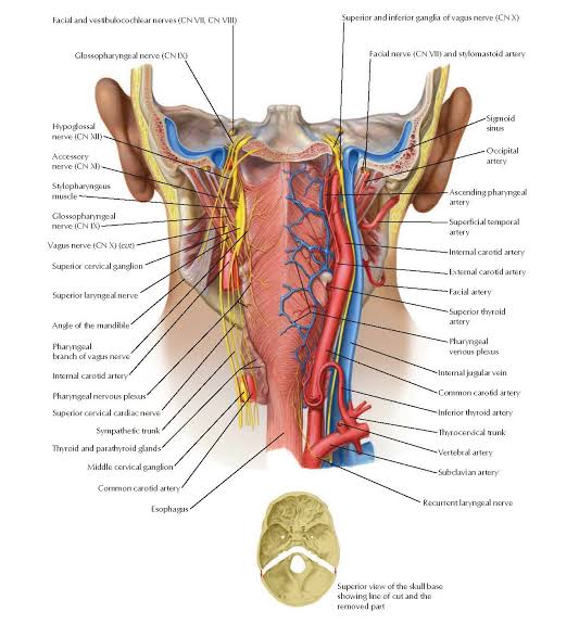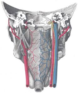 「 咽頭静脈叢は咽頭静脈を通って内頚動脈にはいる咽頭の後外側壁上の静脈叢 」
