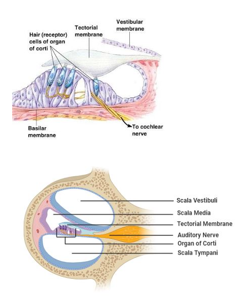 ・acellular:無細胞の ・cochlea:蝸牛 ・inner ear:内耳 ・basilar membrane:基底膜 ・spiral limbus:ラセン板縁 ・spiral organ of Corti:コルチ器 ・radially:放射状に ・limbal:辺縁の? ・auditory teeth of Huschke:フシュケの聴歯 ・Hensen's Stripe:ヘンゼン線(条) ・inner hair cells:内有毛細胞 ・outer hair cells:外有毛細胞 ・acoustic stimulatio:音響刺激試験 ・fluid coupling:流体継手 ・stereocilia:不動毛