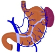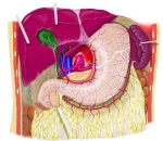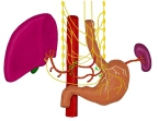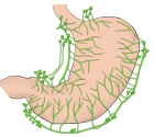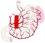 「 The hepatogastric ligament or gastrohepatic ligament connects the liver to the lesser curvature of the stomach. It contains the right and the left gastric arteries. In the abdominal cavity it separates thegreater and lesser sacs on the right. It is sometimes cut during surgery in order to access the lesser sac. The hepatogastric ligament consists of a dense cranial portion and the caudal portion termed the pars flaccida. 」