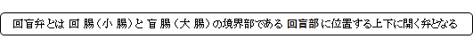 回盲弁( かいもうべん、英:ileocecal valve ) ・概 要 ・参考となるサイト 【概 要】 ・「個人差は大きいが、成人で横幅:約2~4cm前後、縦幅:約1~2㎝」(ChatGPT) 盲腸(断面) ■ 写真やイラストを掲載しているサイト ■ ・ イラストや写真を掲載しているサイト-Ⅰ ・ イラストや写真を掲載しているサイト-Ⅱ ・ イラストや写真を掲載しているサイト-Ⅲ ・ イラストや写真を掲載しているサイト-Ⅳ ・ イラストや写真を掲載しているサイト-Ⅴ