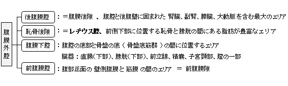 以下に後腹膜の領域を構成する要素を一覧にしてみた。