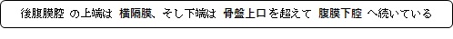 横隔膜には血管や食道が通る裂孔があるため完全、後腹膜を完全に閉じているとは言えない。 |