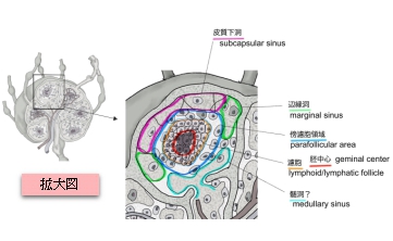 髄索、髄洞、濾胞 |