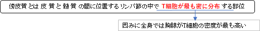 傍濾胞領域とは濾胞の周りのT細胞主体の領域で、樹状細胞なども多数見られる。