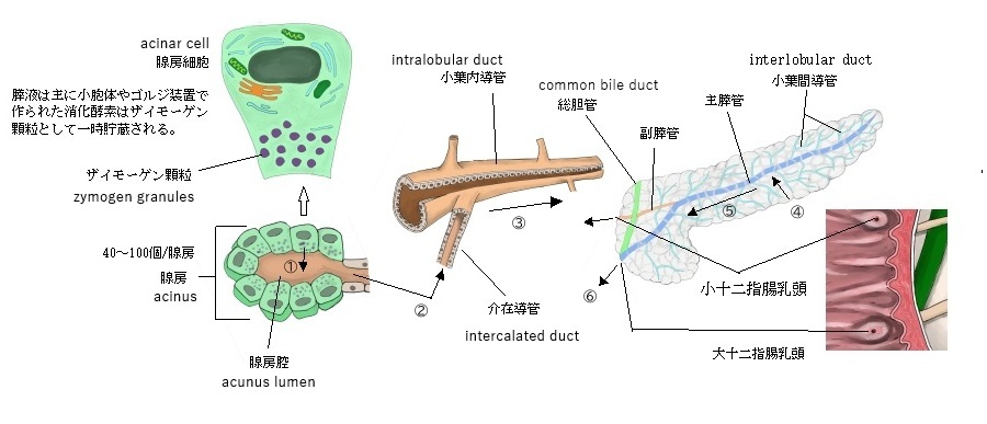 ・腺房(膵臓など):単層立方上皮、機能)酵素の分泌