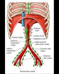 したがって、腸リンパ本幹の下部は腸間膜内を走りますが、腰部で乳び槽に向かうあたりからは腹腔後方に移動します。