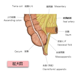 虫垂間膜( ちゅうすいかんまく、英:mesoappendix ) ・概 要 ・参考となるサイト 【概 要】 虫垂に関係する神経、血管、リンパ管のほとんどはこの間膜経由となる。よって、詳しくは「虫垂」の項を参照のこと。 ■ 写真やイラストを掲載しているサイト ■ ・ イラストや写真を掲載しているサイト-Ⅰ ・ イラストや写真を掲載しているサイト-Ⅱ ・ イラストや写真を掲載しているサイト-Ⅲ