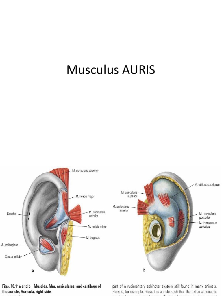 ・intrinsic muscle:内在筋 ・pinna:耳介 ・scattered:まばらな ・eminence conchae:甲介隆起 ・prominence:突出(部) ・scapha:舟状窩 ・modify:変える ・profile:輪郭 ・auricular cartilage:耳介軟骨 ・derive:由来する ・pharyngeal arch:鰓弓