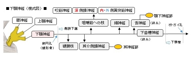 ・「前後の2枝があって、外側翼突筋の内側を下顎骨に接しながら上方に走り、側頭筋に分布する。」(船戸和也のHP)