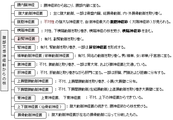 以下は交感神経の腹部からの枝を簡単に表した図となる。