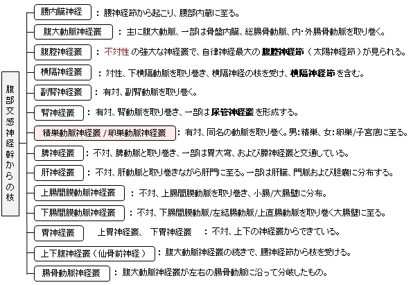 以下は交感神経の腹部からの枝を簡単に表した図となる。