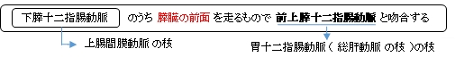 前下膵十二指腸動脈( 下膵十二指腸動脈の枝 ) ( ぜんかすいじゅうにしちょうどうみゃく、英:anterior inferior pancreaticoduodenal artery ) 前下膵十二指腸動脈 とは ・「プロメテウス解剖学アトラス」では「下膵十二指腸動脈の前枝」という表現を用いている。 【 イラスト掲載サイト 】 ・ イラストや写真を掲載しているサイト-Ⅰ ・ イラストや写真を掲載しているサイト-Ⅱ ・ イラストや写真を掲載しているサイト-Ⅲ ・ イラストや写真を掲載しているサイト-Ⅳ ・ イラストや写真を掲載しているサイト-Ⅴ