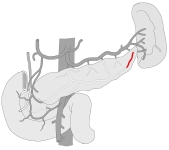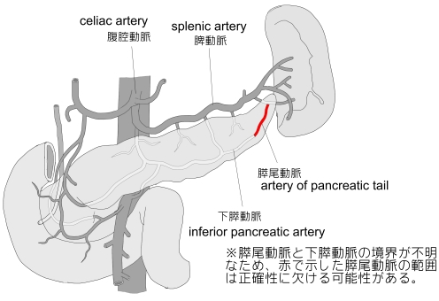 膵尾動脈 ( 脾動脈の膵枝の1つ ) ( すいびどうみゃく、 英 : artery to tail of pancreas ) 膵尾動脈 とは 以下は膵枝の枝を簡単に表したものとなる。※参考:「 日本人体解剖学 」 【 イラスト掲載サイト 】 ・ イラストや写真を掲載しているサイト-Ⅰ ・ イラストや写真を掲載しているサイト-Ⅱ ・ イラストや写真を掲載しているサイト-Ⅲ ・ イラストや写真を掲載しているサイト-Ⅳ ・ イラストや写真を掲載しているサイト-Ⅴ