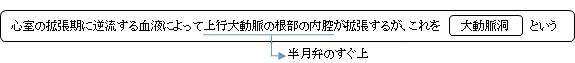 上行大動脈の根部、右および左の大動脈洞に一致するところから左右の冠状動脈が出ている。