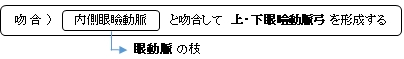 以下は「 日本人体解剖学 」を参考にして眼動脈の枝を簡単に一覧にしたものとなる。