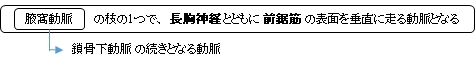 以下は腋窩動脈の枝を簡単に表したものとなる。