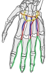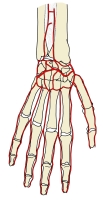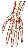 | 指(左側面) | 右手掌側の 神経/動脈 |