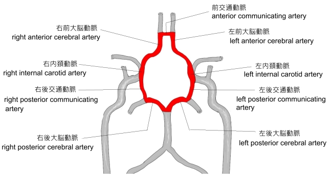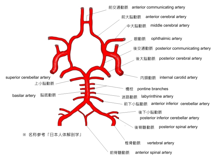 内頚動脈 ( 頚鼓動脈、 眼動脈、 大脳動脈輪、 大脳動脈 )
