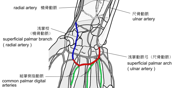・ 浅掌動脈弓( 総掌側指動脈、 固有掌側指動脈 )